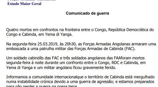 Uma Guerra de Guerrilha, com, pelo menos, 45 anos, devido a quando da descolonização portuguesa, Cabinda, que não era parte integrante de Angola, não ter